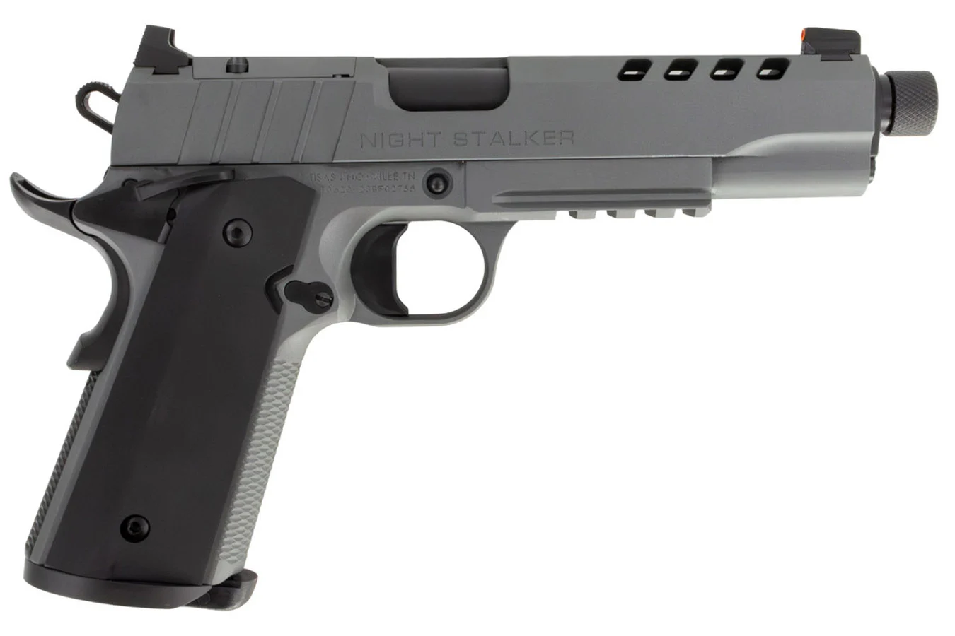 - Tisas 1911 Night Stalker 9mm Semi-Auto Pistol with Platinum Grey Cerakote Finish and Threaded Barrel